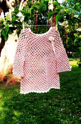 Cute summer pullover with short sleeves, very easy even for beginners. It can be a light and airy swimsuit cover, or turn a sleeveless dress.