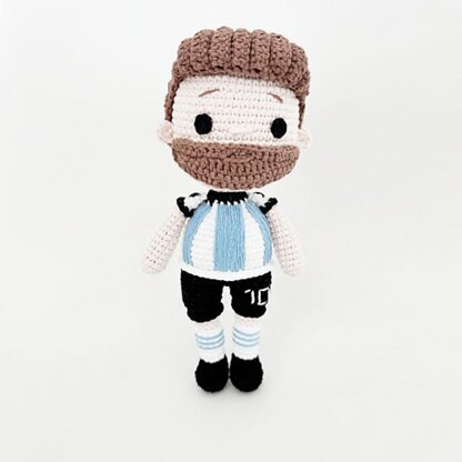 Messi measures approximately 26 cm when using the materials mentioned above. If you are using yarn with a different gauge the toy’s measurements will change. Feel free to use any yarn you want, the toy itself won’t change, just the size. Make sure you sew tightly every part of the toy.