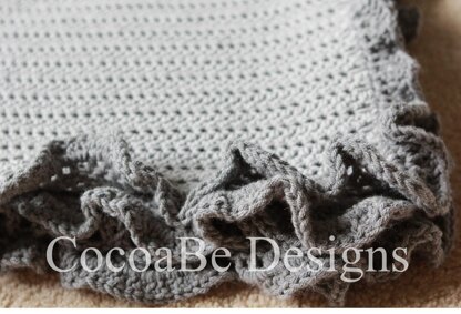 The Mia blanket repeats a simple, yet beautiful pattern. The crochets form a ribbed pattern that isn’t too dense or heavy. The capstone for the blanket is the ruffle edge. This blanket is beautiful in a single color as well as the featured colors!