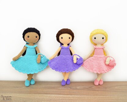 English Pattern Only. This pattern uses US Crochet Terms. The file contains a chart to show the conversions to UK Crochet Terms. Make your own Mia the Sweet Doll with this CROCHET PATTERN. The pattern includes instructions on how to make a cute doll. This PDF pattern includes 11 pages with step by step instructions and photos so you can crochet your own doll. Finished doll is about 11" (28 cm.) tall when you use DK weight yarn and a 3.00 mm. crochet hook For this pattern you need to have basic-intermediate crochet and amigurumi skills and to know how to read crochet patterns.