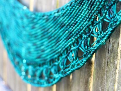 Miasuli is a cozy crescent shaped shawl that does double duty as a scarf with its elongated shape and shallow depth. The short rows are easy to keep track of with yarnover turns and the lace edging is much simpler than it looks. A lovely go-to piece for chilly days and nights.