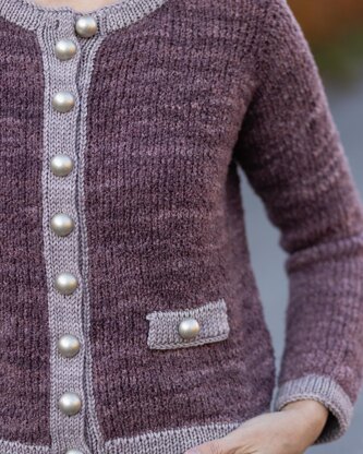 Mickan is a classic piece of clothing that is designed for unique textured bouclé yarn. Knitted in bouclé merino yarn to get rich and visually interesting look, this jacket represents Chanel influence, versatility, timeless appeal, and comfort. Knit your own wardrobe staple. The jacket is knitted from the top-down in one piece using picking up stitches from seaming points to get a seamless construction. Choose your favorite colors to play with.