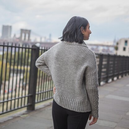 Middagh is the ultimate sweater weather pullover featuring strikingly modern cables at the sleeve, allover broken rib stitch on the body, and a snuggly cowl neck. This drop shoulder pullover is worked from the bottom up in pieces, starting with an optional tubular cast on. The sleeve cables flow seamlessly out of 2x2 rib and the cowl neck is picked up and knit in the round.