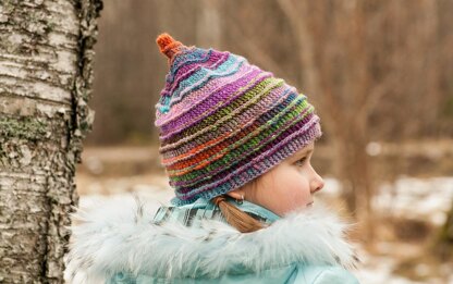 This super easy and fun to knit unisex hat is worked back and forth in rows and spirally joined as you go along.
