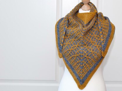 Mika is an eyecatching unisex triangular shawl, knitted in simple garter stitch stripes and easy-to-knit slip stitches. You start with a small garter tab and work from top down with increases in RS and WS rows. So the shawl gets longer wings without being to long from top to the tip. You are alway knitting with just one color, you won’t have to use both colors at the same time.