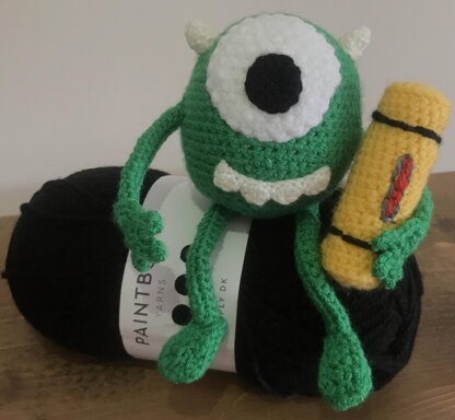 Amigurumi crochet pattern for the popular Monsters Inc character Mike Wasowski, with the additional pattern for a scream cannister accessory.