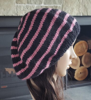 This 12ply striped Beret is quick to knit and very warm to wear.
