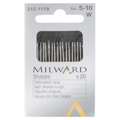 Milward Hand Sewing Needles - Sharps - Nos.5-10 - 20 Pieces
