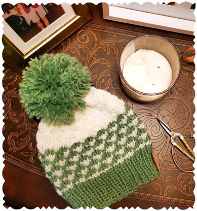 This cute mimosa beanie is knitted seamlessly from bottom-up using two colour of yarn and the slip stitch technique to create beautiful texture. A big fluffy pompom pining on the top adds a final touch to the lovely hat.