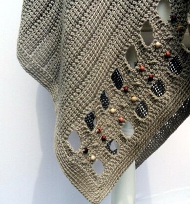 Make this sharp, stylish poncho designed as a solid fabric for warmth using flexible materials and stitching to hug the shoulders for comfort. This design features the Linked Treble Crochet Stitch which is made by connecting Treble Crochet stitches together to form rows of dense ribbed-like cozy fabric. The openwork section features the Linked Treble Crochet stitch, wooden beads and Cobble stitches.