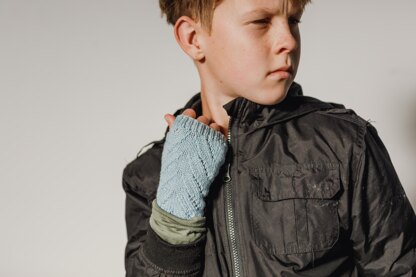 The gloves are designed to have up to 1” / 2.5 cm negative ease, depending on preference. Pictured gloves are both modelled on a hand 6.5” / 16.5 cm circumference at the knuckles (8 years old).