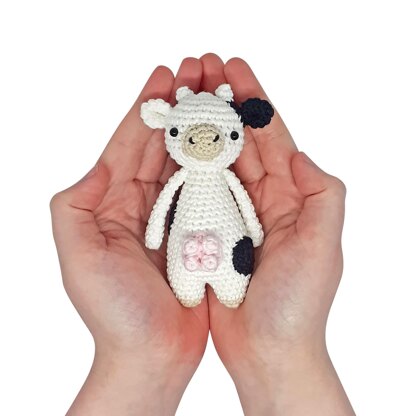 The cow can be made with any yarn and crochet hook size of choice. The one in the picture is made with DMC Natura Just Cotton yarn and a 2.25 mm (size B) hook. It turned out 12 cm (4.7 inches) tall.