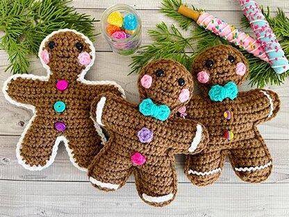 Our finished Mini Gingerbread Boy Kawaii Cuddler® is 7″ x 5.5". Hook size, yarn choice, and crochet tension will affect each individual result.