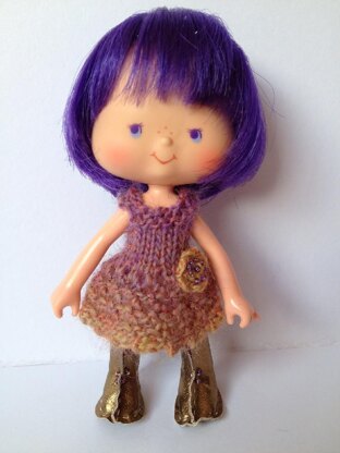 Sweet little lacey knit dress for your Strawberry Shortcake doll. Brilliant for using up scraps of sock yarn!