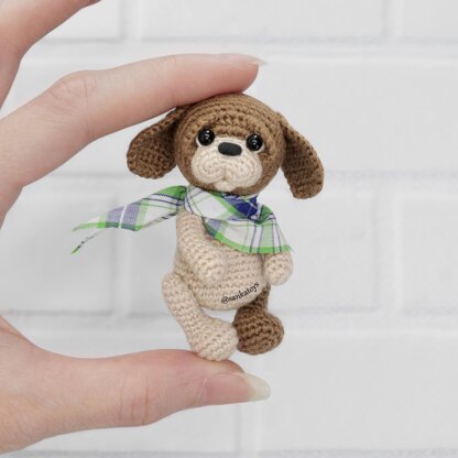 - Slonim bobbin yarn in 2 threads (Belarus, viscose+acrylic, 100g ~ 808m, 42-45sc in 4 inches). Colors: beige and brown. Embroider a nose with a black thread (floss).
