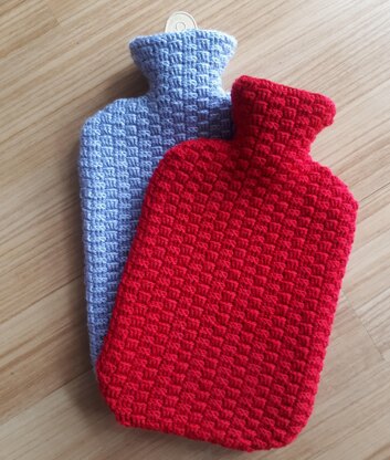 A pattern for those who prefer to work with a smaller crochet hook and a finer yarn, resulting in a delicate basket weave look. Instructions are included for a 2.5-litre hot water bottle and a 1.75-quart (2-litre) hot water bottle. A side zip can be included to provide easy insertion and removal of the hot water bottle, or alternatively, insert the (rolled-up) hot water bottle through the top opening.
