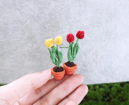 If you’re looking for charming miniature potted tulips to add to your dollhouse or give as a gift, this pattern is just the thing! It’s a speedy project that requires only a small amount of thread to make one flower pot.