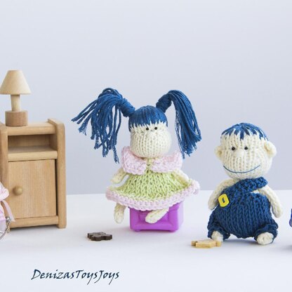 Minikler. Two dolls. - pdf knitting pattern. Knitted in the round.