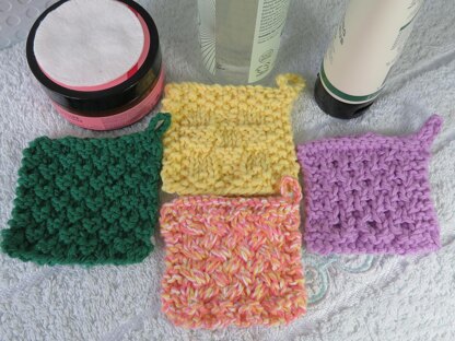 From the Intro: I was putting a cotton pad in the bin the other night when I realised it is probably not so great environmentally. Yes, the cotton pads will bio-degrade but there's the plastic wrap too. So I went hunting for patterns, as us knitters do, and ended up testing and writing some out. Watch this space as I may do more, hence (part 1), being optimistic! Not only are these good for reducing your waste when used for your daily routine. They are also a good way to try out new stitches or techniques. Of course these are for anyone but I've done these 4 mini cloths as 2 simple but effective cloths for beginners and 2 cloths that introduce cables.