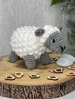 Minty lamb can be made in many types of yarn. Bobble stitch is fun and looks great on a sheep!