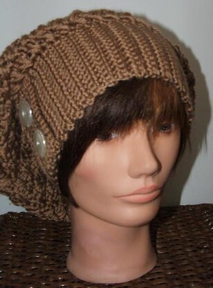 High ribbed, button flap casual and fun Slouch beret.