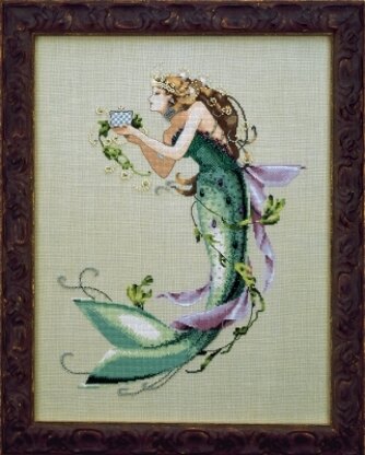 Design Size 29cm. x 38.5cm. when worked on 32 count linen(2 over 2). This limited edition cross stitch chart features The Queen Mermaid swishing through the waves, glittering in the ocean light. She is a figure of fairy tale but seems quite real in her watery world. Not to be bought, only to be made by you... 'with the hand and from the heart'. . Mirabilia - Nora Corbett.