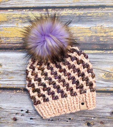 The Mirage beanie is a simple pattern using knit and purl stitches to create a beautifully textured beanie.