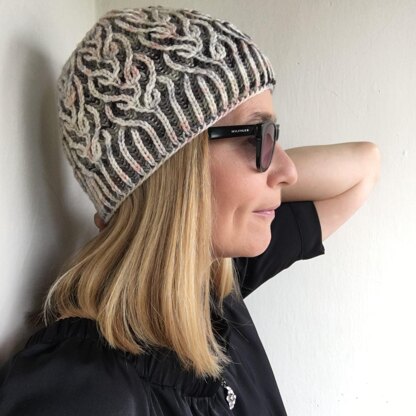 The question is: what came first, the pattern or the yarn? In this case I was so excited about these subtle hand-dyed colors and started to dream about a new botanical-inspired pattern! I was thinking about a leaf tendril or a climbing plant. It´s so exciting to make little unventions in brioche knitting. As soon as you start increasing or decreasing, stitches become alive and pattern lines are growing all over the hat!