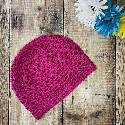 The Miriam Beanie was created specifically for the Crochet Challenge hosted by Sweet Potato 3, an event honoring those who deal with cancer and the effects of their treatment.