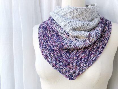 Two strands of fingering weight yarn held together make this cowl a cute quickie project! The simple fade effect is achieved by swapping out one strand at a time for the second color.