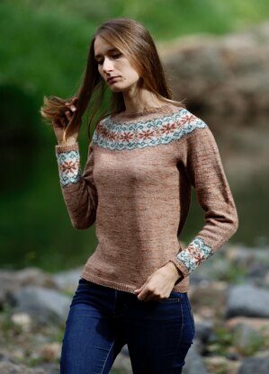 Miss Cassie is a top down sweater, knit entirely in the round. The colourwork design is achieved by stranded knitting. As it is knit from the top down, the length of the sleeves and body are easily adjusted to suit your body.