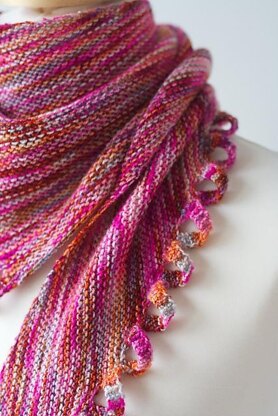 Miss Winkle is an asymmetric shawlette in garter stitch that looks fabulous in variegated yarn. Starting with one little loop, adding longer & longer rows to form a long triangle. There are almost no purl stitches, this is a very relaxing but quick project, perfect for beginners & young knitters. A great project on-the-go for knitting experts. You can use any amount of yarn, you can just knit until your yarn is used up.
