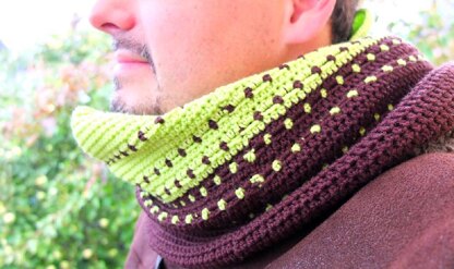 Mostly a cowl for the male crocheter out there, it may also look nice on a woman's neck. Just choose the colors you like, especially contrasting complementary colors let the pattern pop!