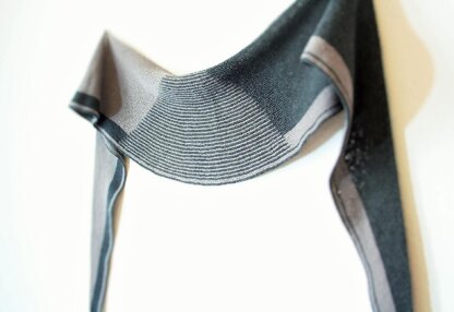 In a fitting nod to the concept of yin and yang, the construction of Mix It Up! is more effortless than it first appears: short rows and cast on stitches are the surprisingly easy secret to this colourblocked shawl. With its clean lines, bold contrasts, and cosy garter stitch fabric, this shawl will quickly become a staple in any modern woman's closet.