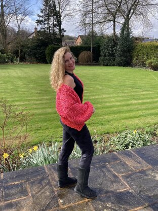 Note: When choosing sizes please be aware that the model is 5ft 9in tall and her shoulders are 2 in [5 cm] larger than they should be based on standard proportions. The cardigan is worn with 4 in/10 cm positive ease in the torso compared to underarm chest measurement. It falls off the shoulder because the model has bigger than average shoulders.