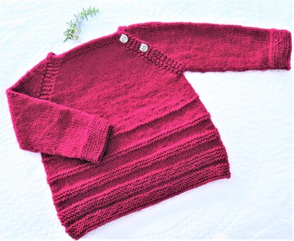 Like all minimal knits | DESIGNED baby clothes, MK#44 is seamless, made top-down, provides plenty of room to grow and the sleeves are designed to be rolled up when baby is at the younger end of the range. A simple combination of stocking and garter stitch gives us a clever looking (but really easy) pattern, and depending on your yarn colour and button choices it will be suitable for a baby girl or boy.