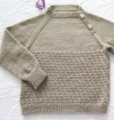 This seamless child jumper is made topdown with integrated neck & button bands, & when the knitting is finished all we have to do is weave in the ends & sew on the buttons. Designed to suit girls & boys, & no complicated stitches or patterns. We do knit 1, purl 1 rib neck band, hem & cuffs, easy short rows to lower the front neckband, simple button placket along the side of the front section, & a cute but simple texture & the rest is stocking stitch.