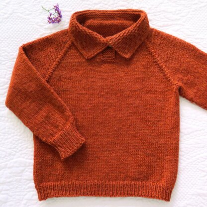 This seamless child jumper is made topdown with garter collar, integrated collar & button bands and rib hem & cuffs. When knitting is finished all we do is weave in the ends & sew on the button. Designed to suit girls & boys, there’s no complicated stitches or patterns to remember. This jumper was made with BWM Luxury 8ply/DK 100% wool in the colour Pumpkin Spice