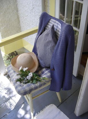 A maddy laine knitting pattern for a long and easy cardigan that features slight waist shaping and V-neck opening.