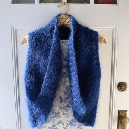 A maddy laine knitting pattern that will give you a weekend’s worth of easy knitting for an elegant vest to showcase a favorite piece of jewelry or a fashionable scarf.