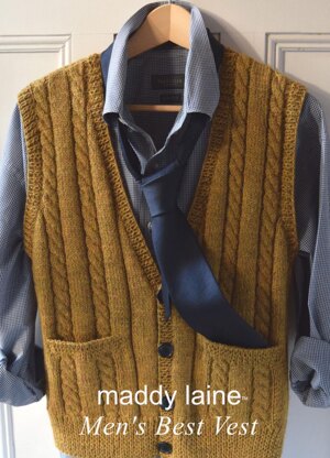 A maddy laine pattern for a classic men's waistcoat/vest to knit in a DK weight yarn making it light enough to be comfortable but ready to add a layer of warmth.