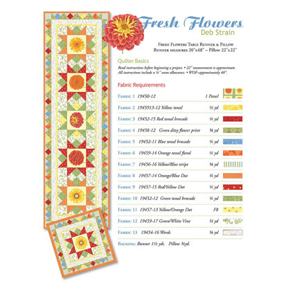 Moda Fabrics Fresh Flowers Table Runner and Pillow - Downloadable PDF is a free Intermediate Quilting pattern by Moda Fabrics, available as a Downloadable PDF and includes instructions in English. Super fun to make, this pattern could be your next masterpiece!