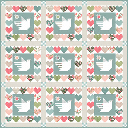 Lella Boutique turns romantic with her Love Notes fabric line, Lovey Dovey quilt sums it up. Kit includes fabric for the top and binding plus Pattern (LB205). Beginner to Advanced Beginner all pieced no applique. Quilt size: 72" x 72" Box size: 11"x11"x3".