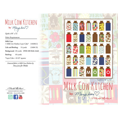 Moda Fabrics Milk Cow Kitchen Quilt - Downloadable PDF is a free Intermediate Quilting pattern by Moda Fabrics, available as a Downloadable PDF and includes instructions in English. Super fun to make, this pattern could be your next masterpiece!