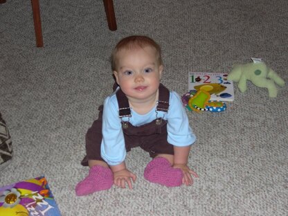 nMolly Baby socks were inspired by a trip to a Dallas yarn shop while visiting friends. Molly needed socks. I had an evening with my friends, Molly’s parents. The complication? No set of dpns of the right size to be found—so these were knit on straight needles, with only two dpns used at the very end of the project. Et Voila, Molly Baby was invented. It’s a shaped baby sock, inspired by Priscilla Gibson-Roberts’ short rows, but knitted on straight needles in an evening.