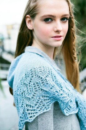 Inspired by cool blue winter skies, this sweet little shawl is made in a soft yarn that is perfect for keeping your neck and shoulders warm on cool evenings. Any 4 ply yarn will suit - approx 400m required.