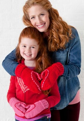 Mom & Daughter Love Mitts in Red Heart With Love Solids - LW3026