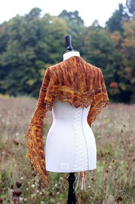 Momijigari is a long and lean shawlette designed especially to showcase Dream in Color's October 2011 Dream Club offering: a 52% Mohair / 48% Merino blend in a 3-ply fingering weight dyed in all the hues that herald Autumn's arrival.