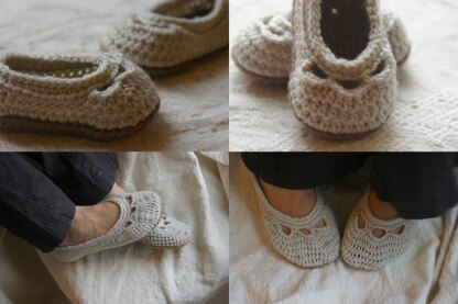 Crocheted using DK weight yarn or light worsted weight yarn for the top and worsted weight yarn for the sole.