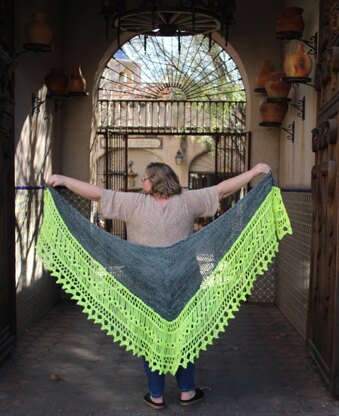 Monanite is a classic top down crescent triangle shawl with a pretty edging. This works up into a huge snuggly shawl. This is designed to be adjustable, so you can knit with any weight of yarn or to any size. This would look great in a solid or 2 colors.